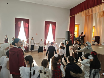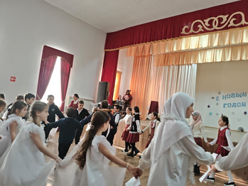 Учащиеся объединений "Буратино", "Веселые нотки", "Умелица" подготовили свои художественные номера, что способствовало повышению их творческого мастерства. Закончилось новогоднее представление зажигательной Лезгинкой и раздачей подарков.