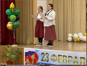 - На базе сош № 30 с.п. Сагопши руководитель объединения « Веселые нотки» Галаева А.Х. со своими кружковцами провела праздничное мероприятие, посвященное Дню защитника Отечества. Цель данного мероприятия: патриотическое воспитание учащихся, воспитание патриотов России, обладающих чувством национальной гордости, любви к Отечеству, своему народу.